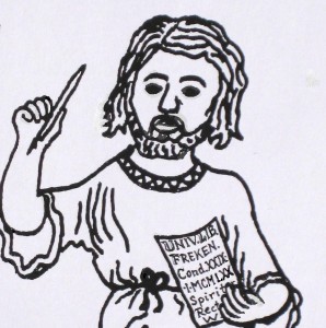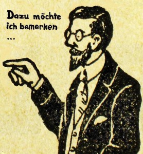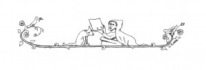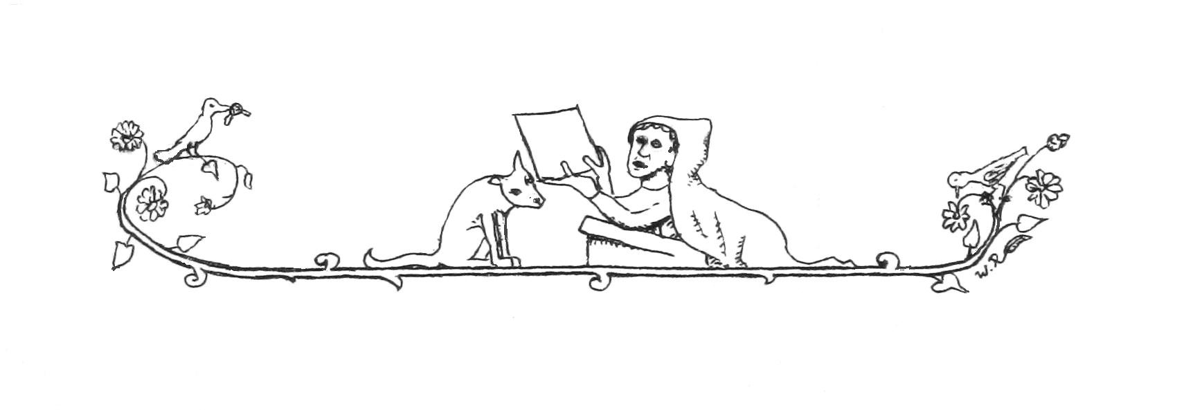 Ausnahmsweise werden manchmal auch Grafiken oder Bilder eingesetzt, die frei verfügbar sind bzw. deren Copyright abgelaufen ist, wie die Vignette ganz unten am Ende dieser Seite. Ansonsten ist es der SR gewohnt, prinzipiell eigenen Fotos, Zeichnungen und Grafiken den Vorzug zu geben (z.B. der hier folgenden, an mittelalterliche Drôlerien angelehnten Zeichnung). Übrigens: Etliche der auf dieser Website gezeigten Abbildungen gewinnen durch Anklicken an Größe und Schärfe, in manchen Fällen wird explizit darauf hingewiesen.